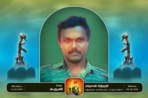 யாழ் மாவட்டத்தில் உள்ள சுதுமலை கிராமம் தான் அவனது பிறப்பிடம். அங்குள்ள அம்மன் கோயிலடியில் ஓடித்திரிந்து வளர்ந்த பிள்ளை அவன். கோயிலடி வீதியிலும், மழை வெள்ளக் காலங்களிலும் வயல் வெளிகளிலும் விளையாடித் திரிந்த இவனின் நெஞ்சத்தில் விடுதலை உணர்வும் துளிர்க்கத் தொடங்கியது.
